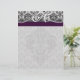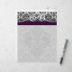 Black and Eggplant Monogram Black Damask Stationery