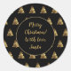 Black and Faux Gold Christmas Tree Pattern Classic Round Sticker