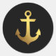Black and Faux Gold Foil Anchor Classic Round Sticker