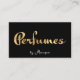 A business card for businesses selling perfume. This card features a black background with the words "Perfume" in faux gold foil text.