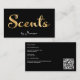 A business card for businesses selling scented items. This card features a black background with the words "Scents" in faux gold foil text.