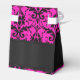 Chic elegant pretty bright fuchsia hot magenta pink and black vintage damask, elegant formal traditional wedding favour box, easily personalise the bride and grooms names to the templates to create a unique stylish retro custom favour box for your special occasions and celebrations. Visit the PERSONALIZED_ WEDDINGS STORE for matching coordinated wedding sets.