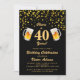 Black and Gold 40th Birthday | Cheers and Beers Invitation