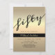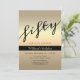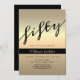 Simple, modern, trendy calligraphy, elegant black and gold 50th birthday invitation.