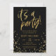 Your guests will know that this will be a fun party by just looking at this invitation! This design features fun typography, a black background, and lots of gold confetti!