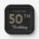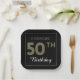 Black and Gold 50th Birthday Retro Stripe Print Paper Plate
