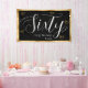 Modern, chic black, gold and white 60th birthday banner with the message ' cheers to sixty years. ' The banner appears in a vintage style design and can be personalised with the inclusion of the birthday girl's name.