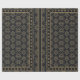 Black and gold abstract graphic pattern. Geometric ornament with frame, border. Line art, lace, embroidery background. Bandanna, shawl, scarf, tablecloth design