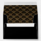 Black and gold art deco fan flower motif envelope. The design features a repeating black and gold fan flower pattern. 1920s Gatsby style motif.