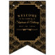 Black and gold art deco fan flowers wedding bunting flag. 1920 Great Gatsby style.
