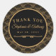 Black and gold art deco fan flowers wedding thank you sticker. 1920 Great Gatsby style.
