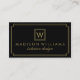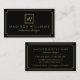 A modern, trendy business card that can be used for any industry. The business card features a custom monogram, gold art deco border, black background, and clean layout to showcase your name/business name. Change the font style, move text, and more, by clicking on the Customise It button.