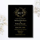black and gold botanical monogram wedding foil invitation postcard