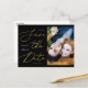 Black and Gold Calligraphy Photo Save the Date Postcard