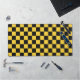 A black and yellow checkerboard pattern with alternating squares creates a bold, geometric design. The pattern appears balanced and vibrant.