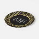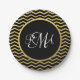 Black and Gold Chevron Pattern Triple Monogrammed Paper Plate