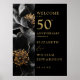 This elegant black and gold floral 50th wedding anniversary welcome sign can be personalised with your information in modern typography. Designed by Thisisnotme©