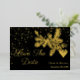 Black and Gold Christmas Winter Wedding Save the date card New Years Wedding Real foil gold