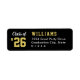 Personalize this graduation address label with your family name and return address. Bold varsity “26” and a classic script “Class of” create a timeless school-spirit look. Black background with gold accents keeps it modern and elevated. Perfect for graduation party invites, announcements, and thank you mail.