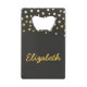 This unique credit card bottle opener is great for you.  Featuring a black background with gold confetti design.  Customise your name.
