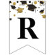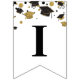 Honour the graduates in your life with this timeless Black and Gold Graduation Cap bunting flag banner featuring a graduation caps in black and faux gold glitter. The sign reads Congratulations! in black all caps.
