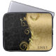 Modern monogrammed black and gold floral damask with gold floral swirl