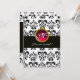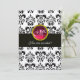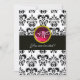 BLACK AND GOLD DAMASK MONOGRAM,red ruby,fuchsia Invitation