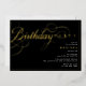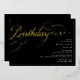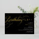 Elegant birthday party invitations with gold foil accents on a black background. "Birthday party" and name text will be featured in real metallic foil, while event details text will be printed in matte white, for easy readability.