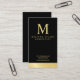 A black and gold elegant design featuring monogram and information in gold professional font style with gold bottom border.