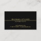 featuring monogram in gold professional font style with gold border on front side and business information in gold professional font style on back side.