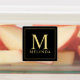 featuring monogram and name in gold professional font style with gold square border on black background.