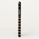 Chic iPhone X case done in black with a faux gold glitter polka dot pattern, across the top of the case and stripes, along the bottom half, of the case. Customise to add your own text.
