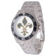 This man's watch features a black and gold fleur-de-lys to go with its elegant style. The Fleur-de-lis is a religious symbol that represents the Holy Trinity. The Fleur-de-lis has many interpretations associated with the conversion of the French monarchy to the Christian religion and blessings from the Virgin Mary.