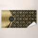 Elegant black and gold tones floral damasks metallic look with customisable monogram and decorative stripes.