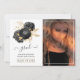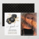 Black and gold watercolor floral graduation announcement photo card featuring a lattice reverse. A portrait style photo is recommended.