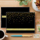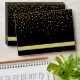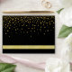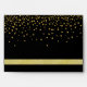 A black colour envelope with gold stripe badge and gold confetti on top and gold metal glitter surface inside the cover gives perfect black and gold envelope.