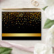 A Black colour envelope with gold stripe badge and gold confetti on top and gold metal glitter surface inside the cover gives perfect black and gold envelope.