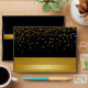 A Black colour envelope with gold stripe badge and gold confetti on top and gold metal glitter surface inside the cover gives perfect black and gold envelope.