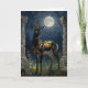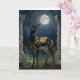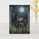 A black and gold Gazelle themed birthday card for anyone. Inside is a sentimental message that you can leave or edit. On the front is an illustration of a majestic gazelle with fur like molten black and gold, standing in ancient ruins bathed in ethereal moonlight. Intricate carvings adorn crumbling stone pillars, and bioluminescent flora casts a soft, otherworldly glow. The scene is rendered in a rich, textural oil painting style with thick impasto strokes.
