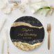 This elegant and glamourous birthday party plate features black and gold faux glitter glam tears on a black background. The text combines handwritten script and modern sans serif fonts for a classy and sophisticated look.