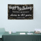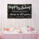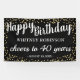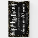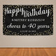 Personalized adult birthday party banner featuring a stylish black background that can be changed to any color, a scattering of party gold confetti glitter, and a cheers to (age) years celebration template that is easy to personalize.