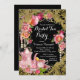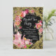 Elegant tea party invitation with pretty pink rose, elegant pearls and pink teapot and teacup on a beautiful black and gold glitter swirl background. This elegant bridal tea party invitation is easily customised for your event by adding your details in the font style and colour, and wording of your choice. You can also change the background colour. This is a printed design with no real pearls, glitter, etc.