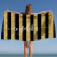 Black and Gold Glitter Stripes Script Custom Name Beach Towel