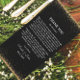 When it comes to thank you cards for wedding reception tables, this card stands out as a top choice for couples seeking an elegant, yet simple design. The black background and gold glitter border create a stunning contrast that catches the eye, while the customisable note template ensures that your message of thanks is both personal and heartfelt. The simplicity of the design ensures that the focus remains on your words of appreciation, making this card an elegant and thoughtful way to thank your guests.