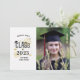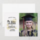 This Black and Gold graduation celebration announcement features graduations caps in black and a faux gold glitter with the words Class of 20XX written on the front. You can add customisation of school name or other organisation. You can personalise with a photo.