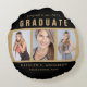 Black and Gold Graduation Photo Collage Custom Round Cushion