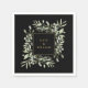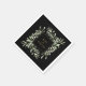 Featuring delicate eucalyptus leaves on a black background with a gold border. These chic botanical paper napkins can be personalised with your names. Designed by Thisisnotme©
