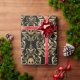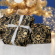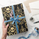 Vintage damask faux foil gold and black halloween gift wrap.