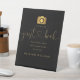 Black And Gold Heart Script Photo Guest Book Pedestal Sign