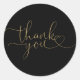 Black And Gold Heart Script Thank You Classic Round Sticker